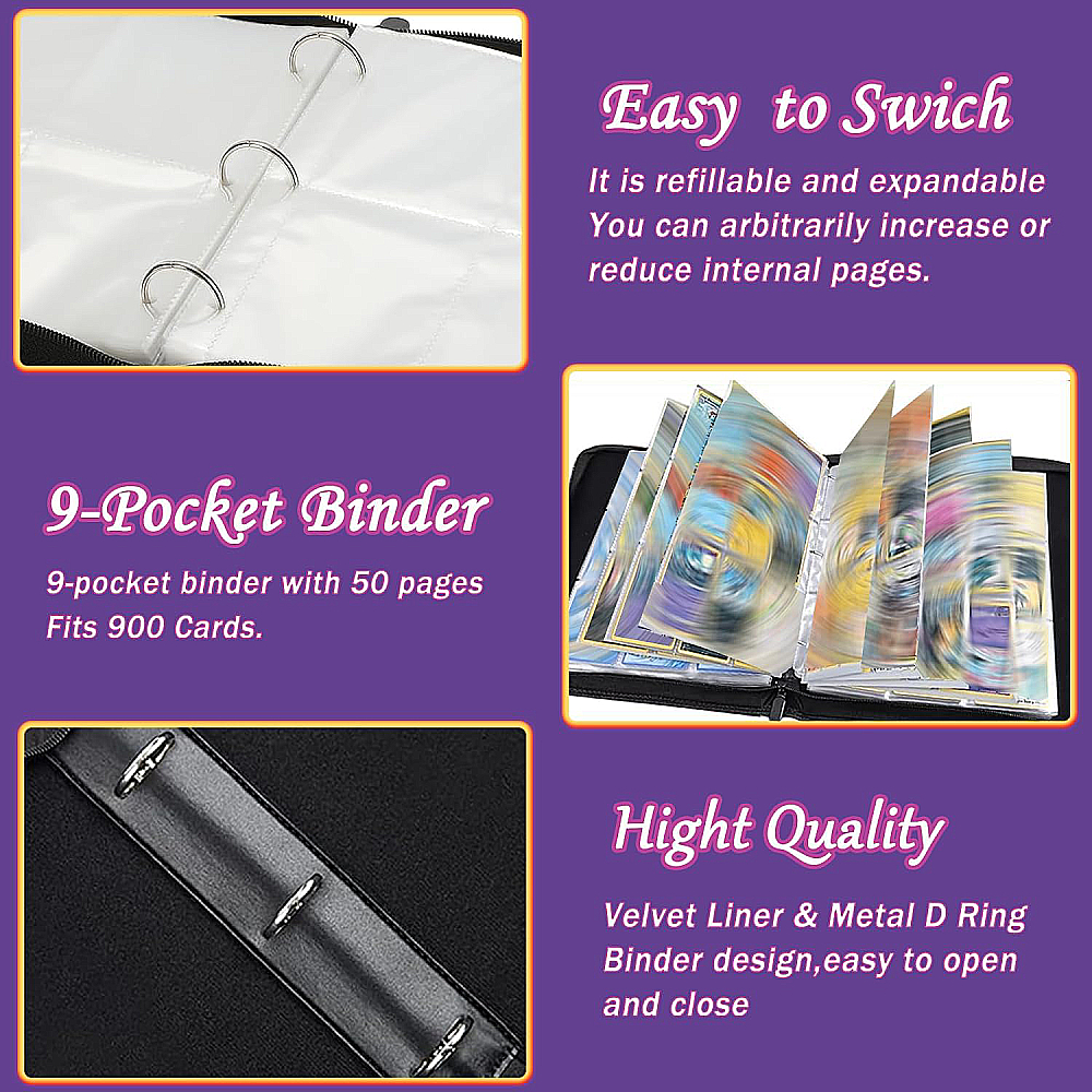 Organiza y protege tu colección de cartas Pokémon. Con una enorme capacidad de 900 tarjetas, nuestra carpeta de tarjetas de 9 bolsillos te garantiza tener suficiente espacio para acomodar tu colección en expansión.