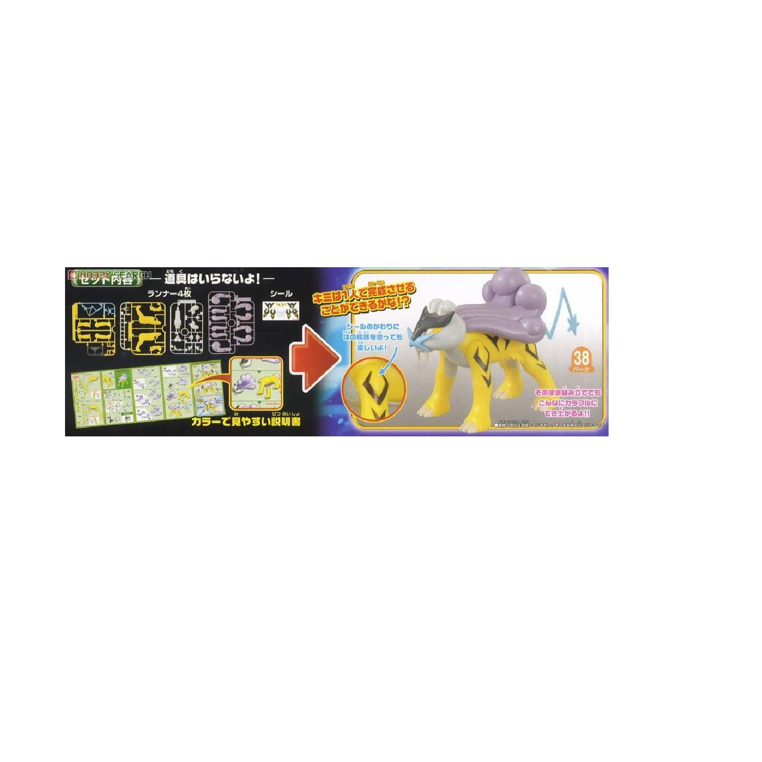 - Este kit de modelo presenta al memorable Pokémon legendario Raikou en un kit fácil de armar.