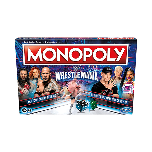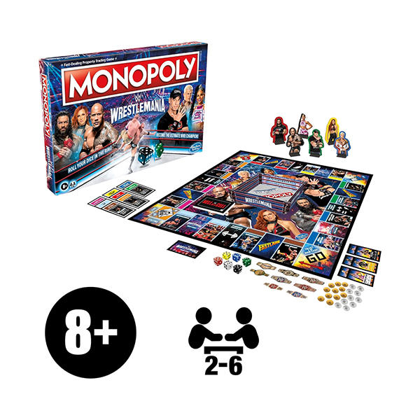 - JUEGO DE MONOPOLY TEMÁTICO DE WRESTLEMANIA: Con el juego de mesa Monopoly: WrestleMania Edition, los jugadores compiten y luchan por ser el campeón definitivo de WrestleMania
