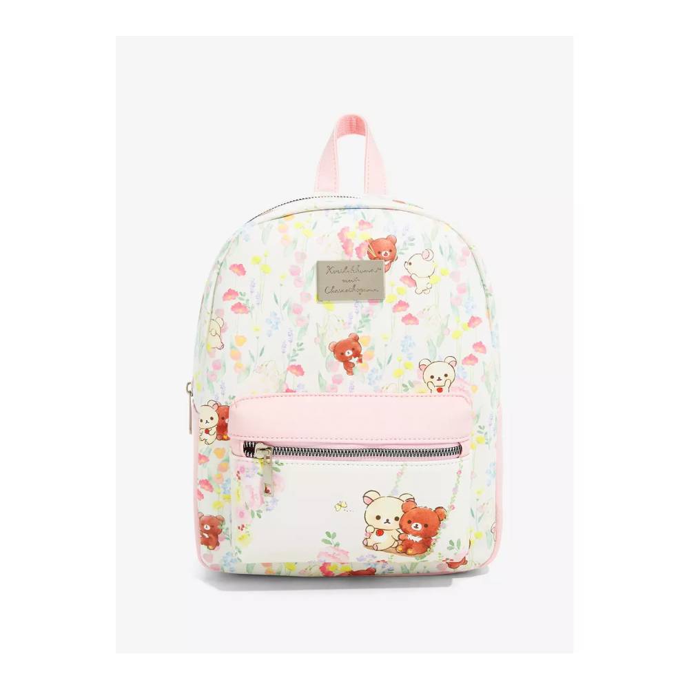 ¡Estos mejores amigos están listos para unirse a tu colección de mochilas! Empaca todos tus esenciales en esta mini mochila floral. Presenta a los amigos de Rilakkuma, Korilakkuma y Chairoikoguma por todas partes, y la pareja columpiándose en el bolsillo delantero con cremallera. Correas ajustables y herrajes en tono plateado.