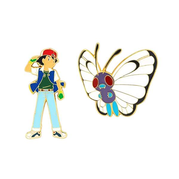 ¡Agrega a tu chaqueta, mochila o tablero de corcho a tu dúo Pokémon favorito con este set de pines! Presentando un pin de Ash y Butterfree, este set es perfecto para tu próxima batalla.