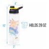 - Esta botella de plástico tiene capacidad para hasta 28 onzas de tus bebidas favoritas. Incluye una tapa segura para mantenerte hidratado sobre la marcha.