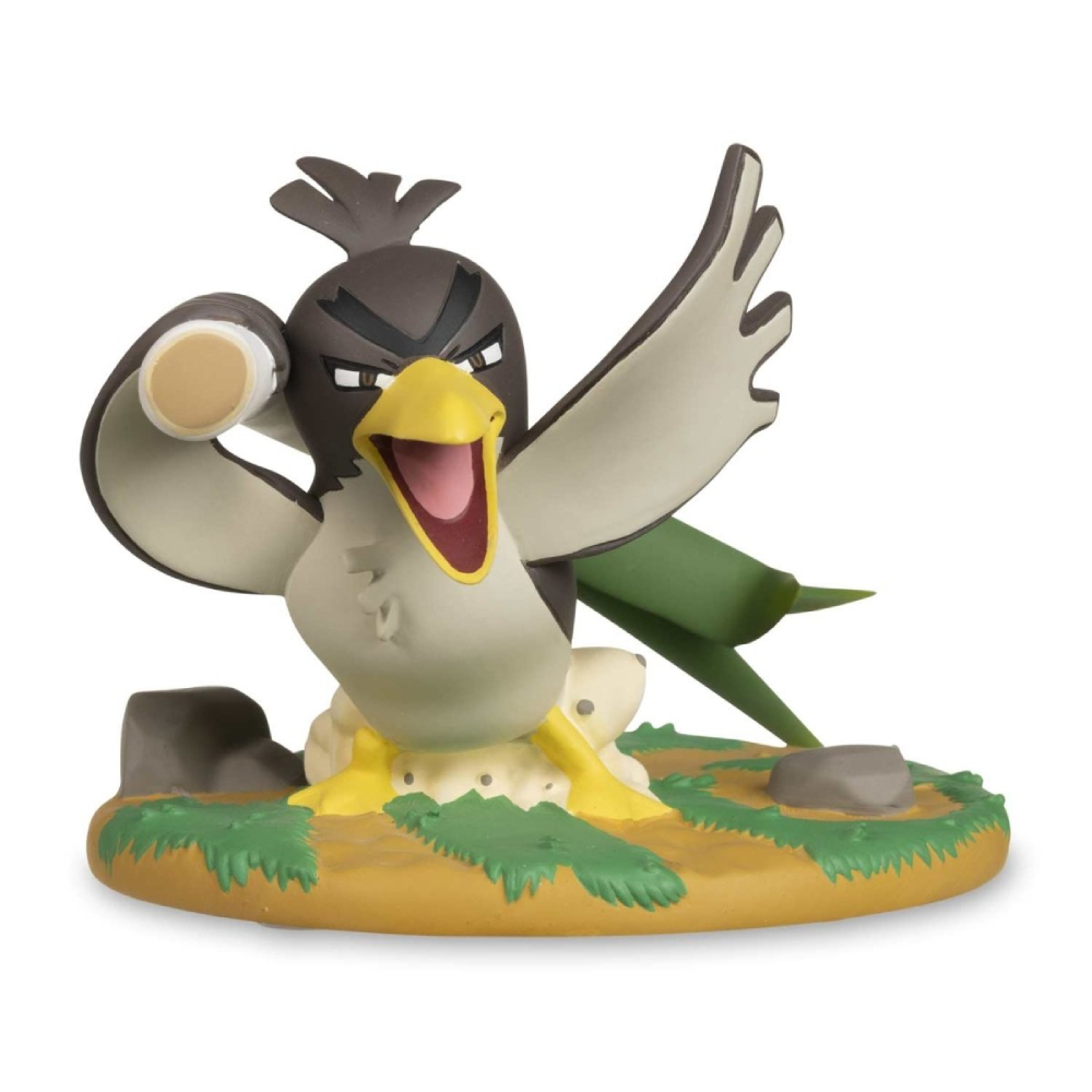 ¡Tan audaz como un Galarian Farfetch’d! Si la fortuna favorece a los audaces, ¡Galarian Farfetch’d parece que una abundancia de cosas buenas debería dirigirse hacia él! Da la bienvenida a un sentido de audacia en tu corazón y hogar con esta figura coleccionable que captura al Pokémon Pato Salvaje con una expresión resuelta mientras mira hacia el horizonte, hacia su próxima batalla. Exhíbela en tu escritorio o estantería para darle color a tu espacio.