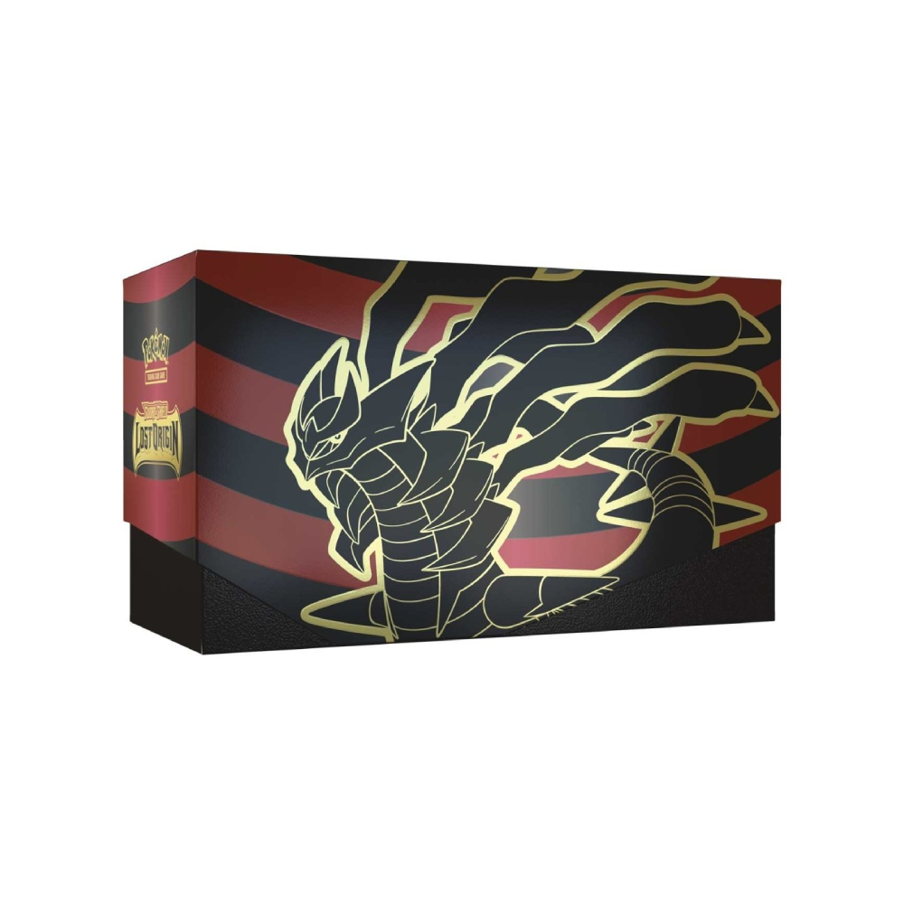 Esta Caja de Entrenador de Élite Pokémon TCG: Espada y Escudo – Origen Perdido del Centro Pokémon solo se puede encontrar en el Centro Pokémon y viene con accesorios exclusivos: un pin y una moneda metálica, además de 10 paquetes de mejora (dos más que en una Caja de Entrenador de Élite estándar).