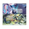 - Todo lo que necesitas para jugar en una caja: una baraja completa de 60 cartas, moneda especial, alfombra de juego, regla y contadores de daños.