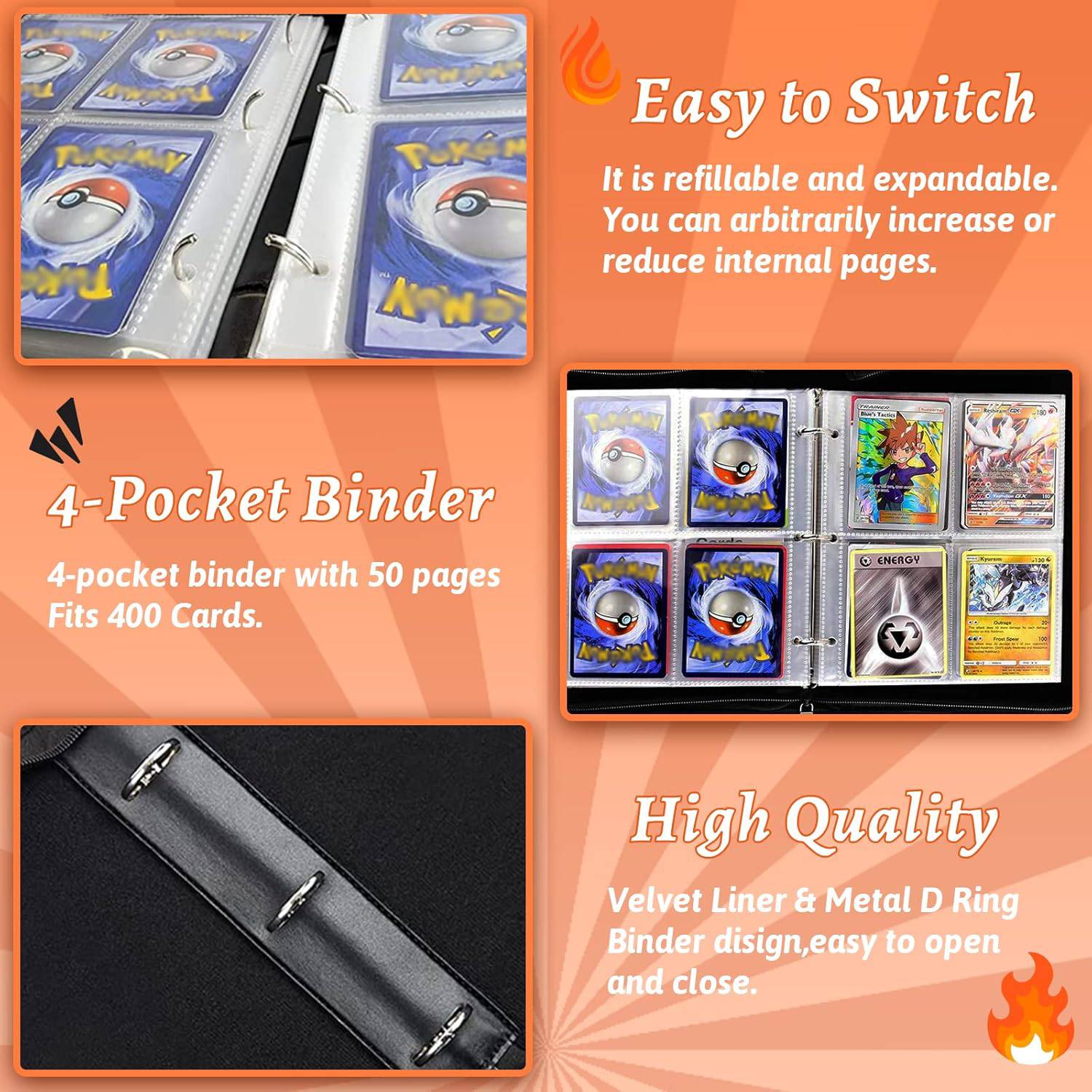 - Gran capacidad: 4 bolsillos para tarjetas comerciales, se adapta a 400 tarjetas con 50 fundas extraíbles; el diseño de 3 anillos es conveniente para añadir o quitar fundas y satisface todas tus necesidades de colección.