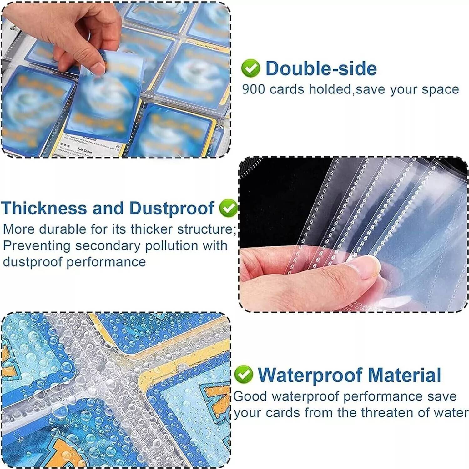 - El álbum de carpetas de tarjetas está hecho de espuma EVA impermeable y cuero PU, con buena resistencia a golpes, polvo y humedad.
