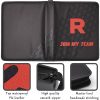 Esta Folder es una excelente manera de guardar y exhibir tu colección de cartas de Pokémon. También es un regalo perfecto para cualquier fanático de Pokémon. Esquema de color rojo y negro de moda con patrones en relieve y las palabras «Únete a mi equipo» para crear una apariencia profesional