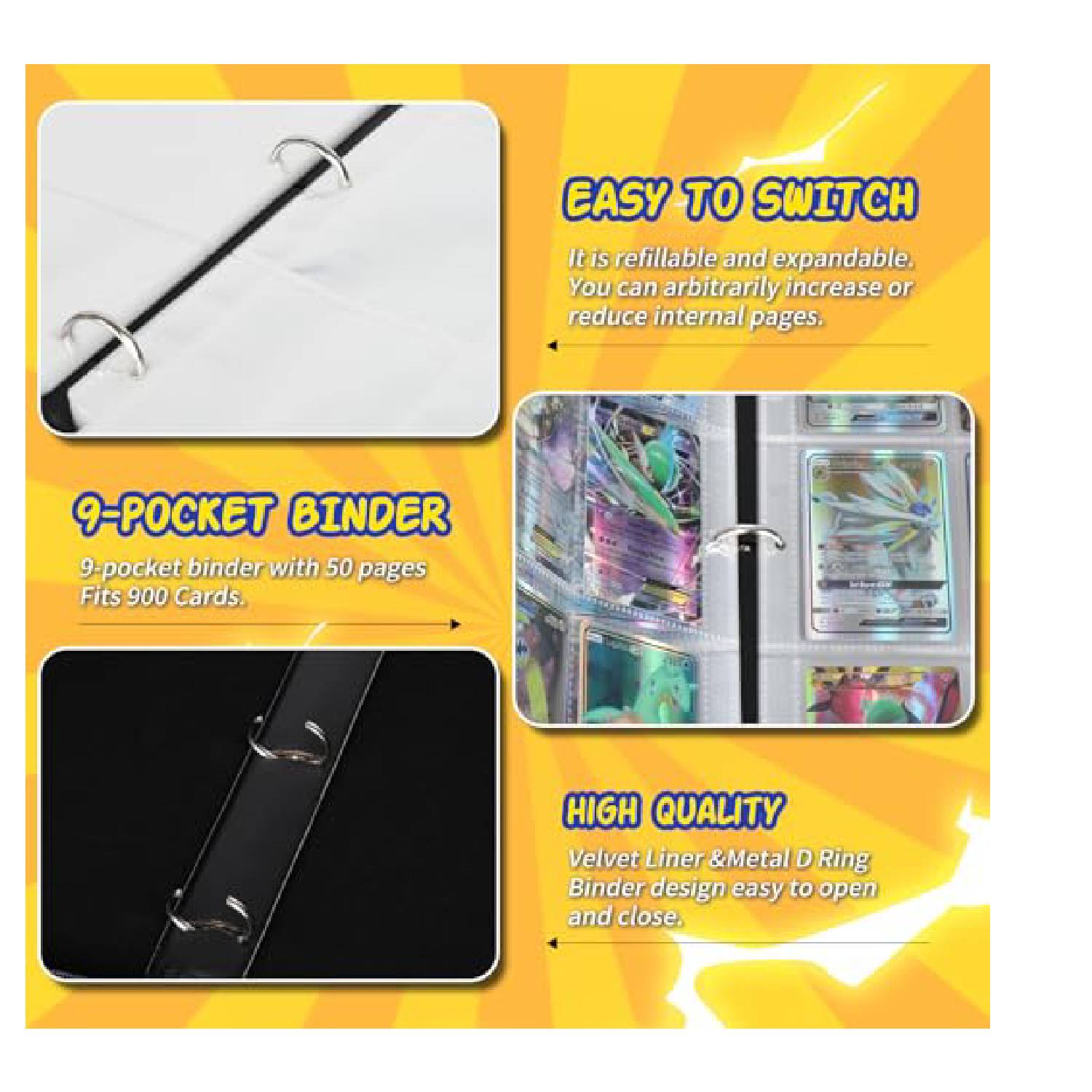 ¡Protege y organiza tu colección Pokémon con este increíble portafolio de 9 bolsillos y espacio para 900 cartas!