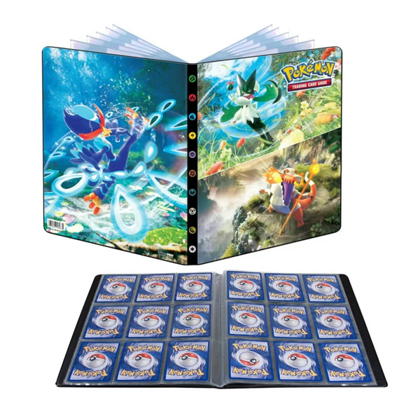 Las carteras de 9 bolsillos para Pokémon cuentan con una vibrante portada artística de Skeledirge, Meowscarada y Quaquaval de Pokémon Violet y Pokémon Scarlet.