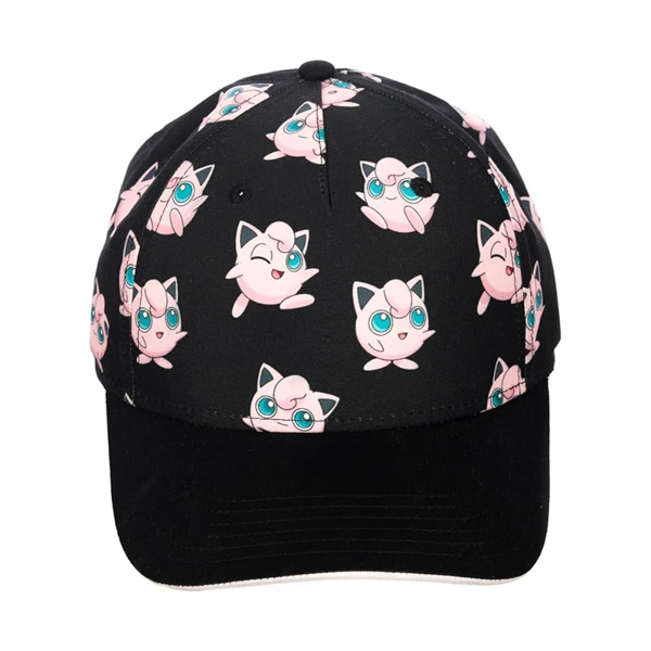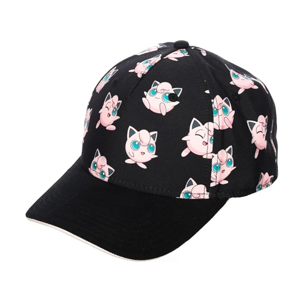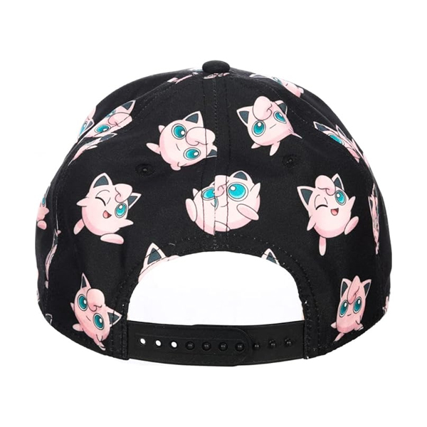 - Diseño personalizado: la gorra de ala curvada Pokémon Jigglypuff para niños con corona impresa es una gorra negra con una vibrante impresión completa de Jigglypuff en la corona y una parte inferior de color rosa.