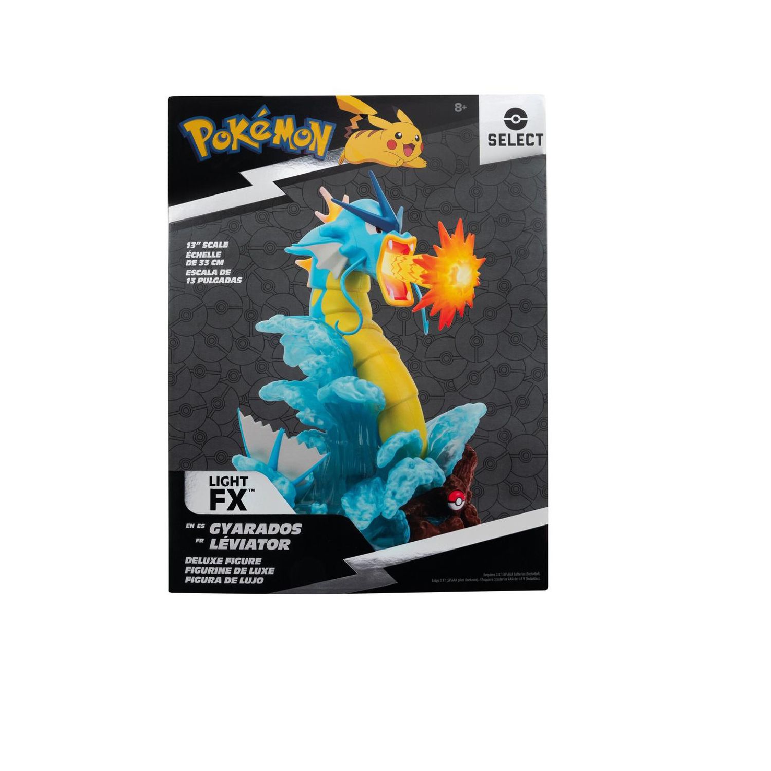 Salta por las cataratas y lánzate a la batalla con Gyarados, el Pokémon Atroz. Esta estatua de colección de lujo de 13 pulgadas incluye luces especiales y representa a Gyarados surgiendo de las olas y hacia el cielo. Activa las luces dentro de su ataque de rayos, así como sus aletas, presionando el botón Poké Ball en la base de la estatua. Ambas secciones brillarán y cobrarán vida, mostrando las habilidades icónicas de Gyarados. El popular Pokémon de tipo Agua y Dragón está auténticamente detallado con una artesanía de calidad de coleccionista y parece que salió volando directamente de la exitosa serie animada Pokémon. Agrega la estatua de colección de lujo de Gyarados a tu equipo Pokémon y celebra al maestro de la combustión. Producto Pokémon con licencia oficial de Jazwares.