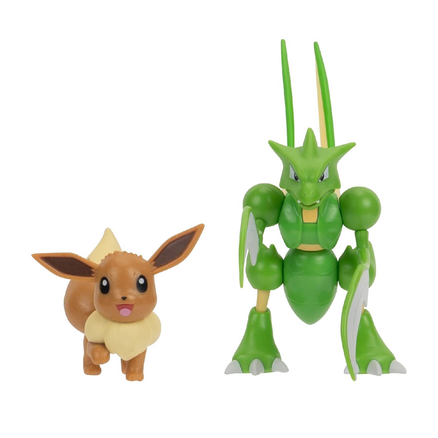- FIGURAS DE BATALLA: El paquete incluye figuras de Eevee de 2 pulgadas y Scyther de 4.5 pulgadas