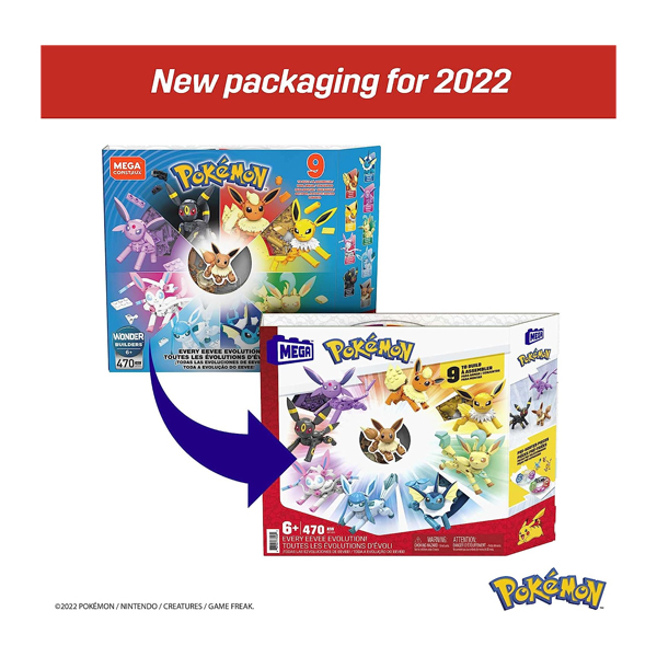 - Figuras para construir de Eevee, Vaporeon, Jolteon, Flareon, Espeon, Umbreon, Leafeon, Glaceon, Sylveon