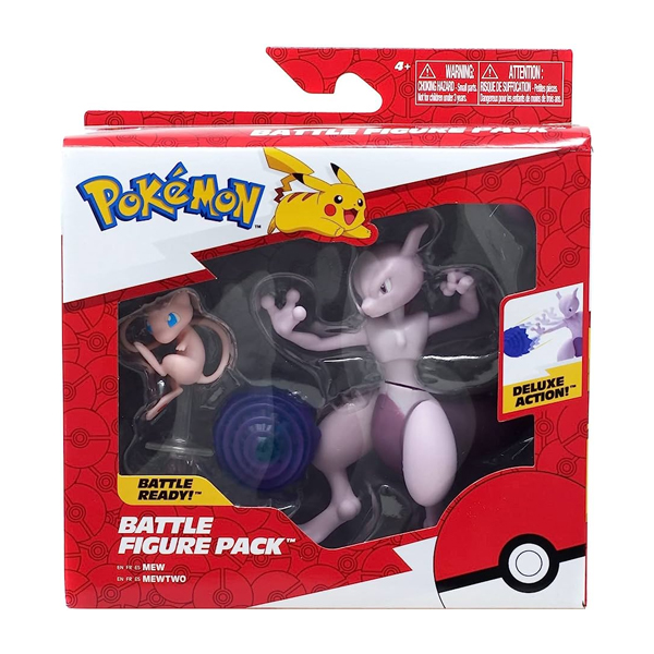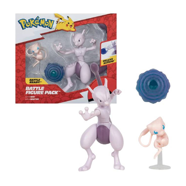 - PLAY & DISPLAY: Muestre el Mew de 2 pulgadas y juegue con el Mewtwo articulado de 4.5 pulgadas.