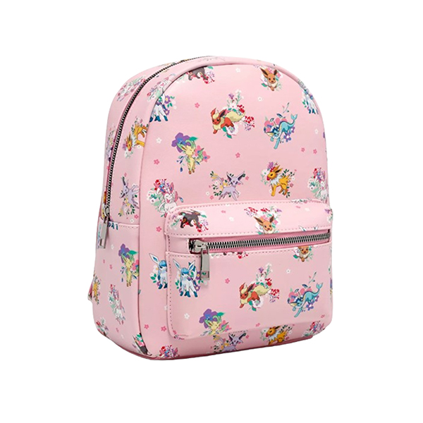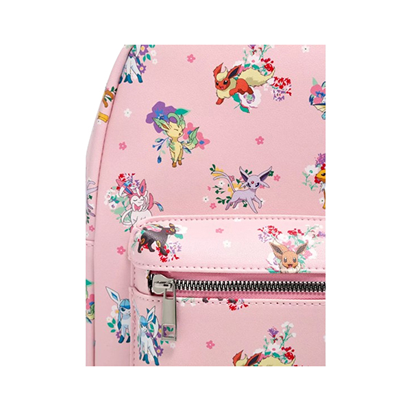 ¡Dirígete al Gimnasio Pokémon con tus esenciales guardados en esta mini mochila! Esta mochila rosa de Pokémon presenta a todas las Eeveeluciones con fondos florales, además de un bolsillo delantero con cremallera y correas ajustables.