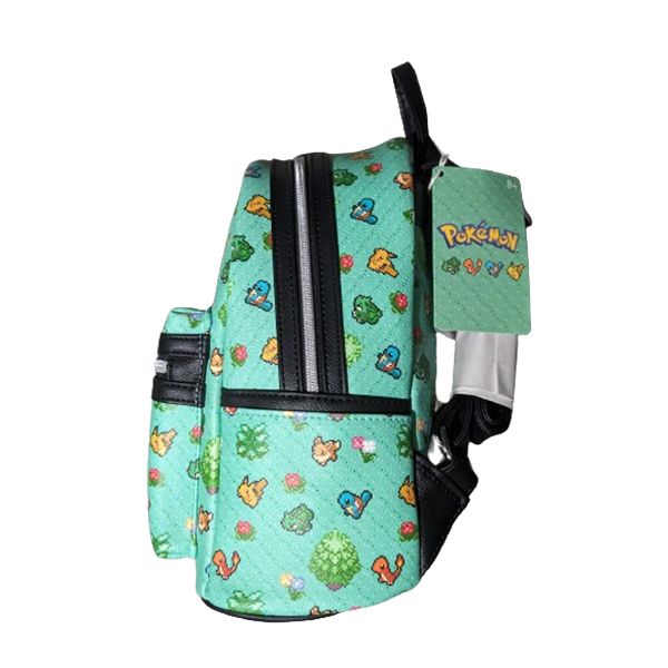 Esta mini mochila Loungefly es el accesorio perfecto para cualquier fan de Pokémon. Presenta a Pikachu, Bulbasaur, Charmander, Squirtle y Eevee en un estilo Gameboy de 8 bits, esta mini mochila está hecha de cuero sintético con acentos coloridos y cierre de cremallera. Con medidas de 8 1/2 pulgadas de ancho, 11 pulgadas de alto y 4 1/2 pulgadas de profundidad, tiene mucho espacio para tus pertenencias. Con diversas ocasiones en mente, esta mochila puede ser utilizada para viajes, eventos, salidas informales e incluso en el trabajo. Con correas ajustables, así como un bolsillo delantero con cremallera, esta bolsa facilita el acceso a todos tus elementos esenciales. ¡Esta mochila es perfecta para cualquier fan de Pokémon!