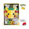 Este rompecabezas Pokémon de 100 piezas cuenta con la cara de Pikachu #025, rodeado de un patrón divertido y atractivo. Reúne este sonriente Pokémon de tipo eléctrico varado frente a una pared de diseños vivos y coloridos.