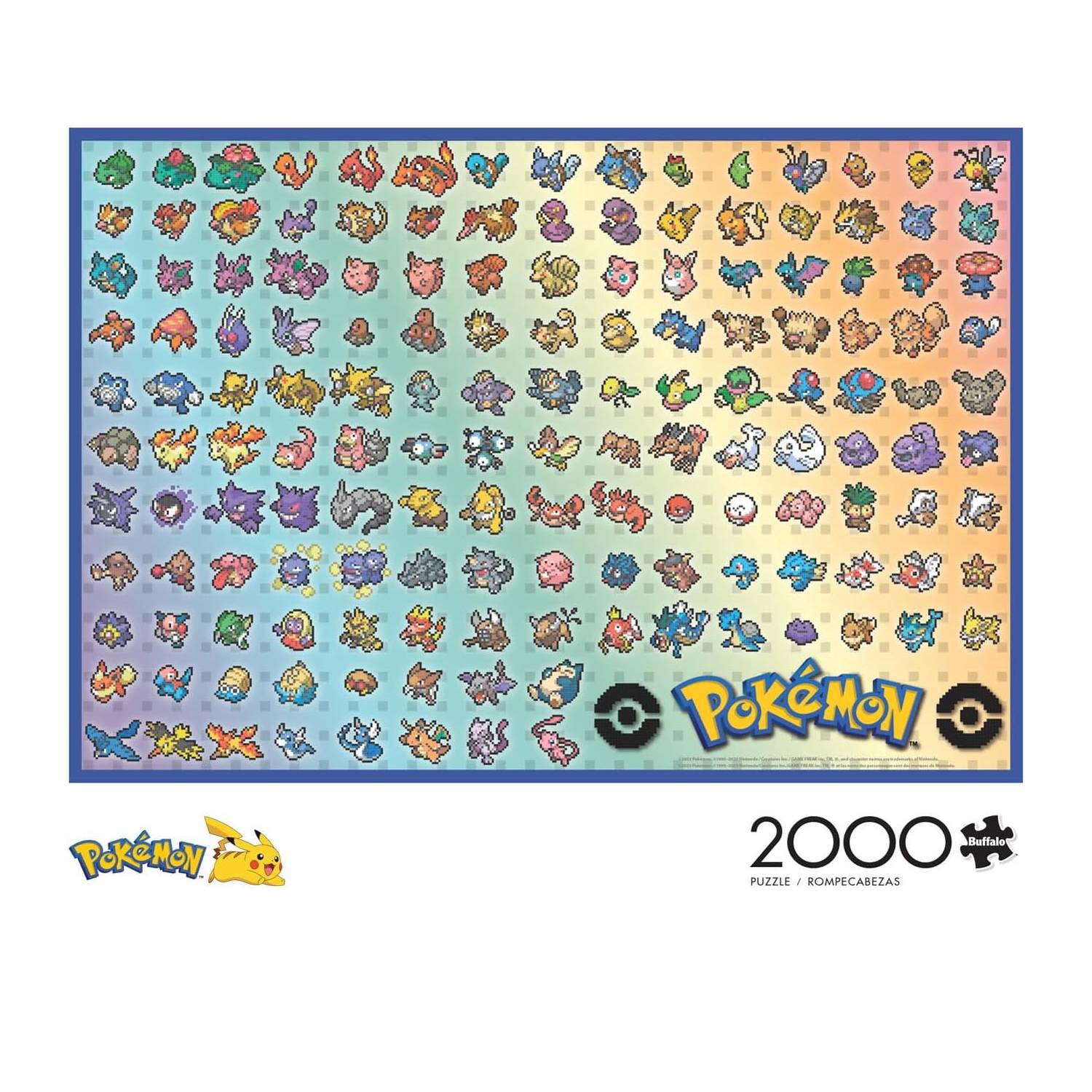 Este rompecabezas Pokémon de 2000 piezas de Buffalo Games cuenta con un collage de encantadoras representaciones de arte de píxeles de los 151 Pokémon originales!