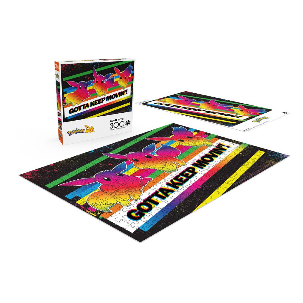 Este rompecabezas te presenta a Eevee, uno de los Pokémon más populares, en una pose alegre y llena de energía. Con sus piezas más grandes de lo habitual, este rompecabezas es perfecto para disfrutar en familia o con amigos.