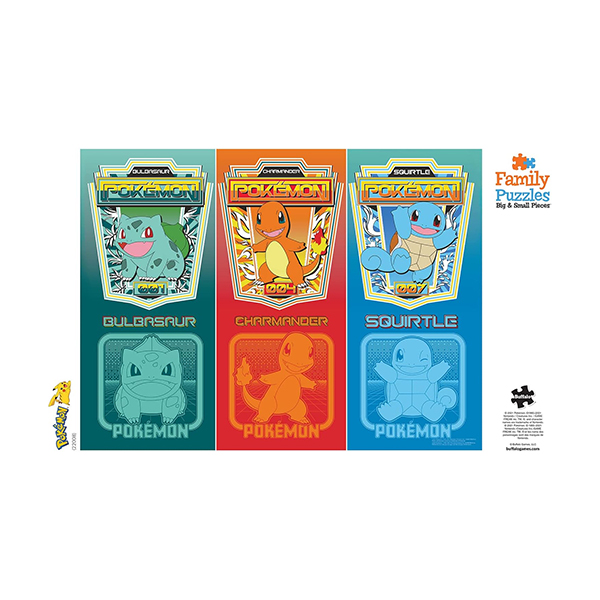 Este rompecabezas de 400 piezas, Pokémon First Partner Pokémon, cuenta con tres de los Pokémon más icónicos del primer socio. Reúne a Bulbasaur, Charmander y Squirtle en este rompecabezas de estilo clásico.