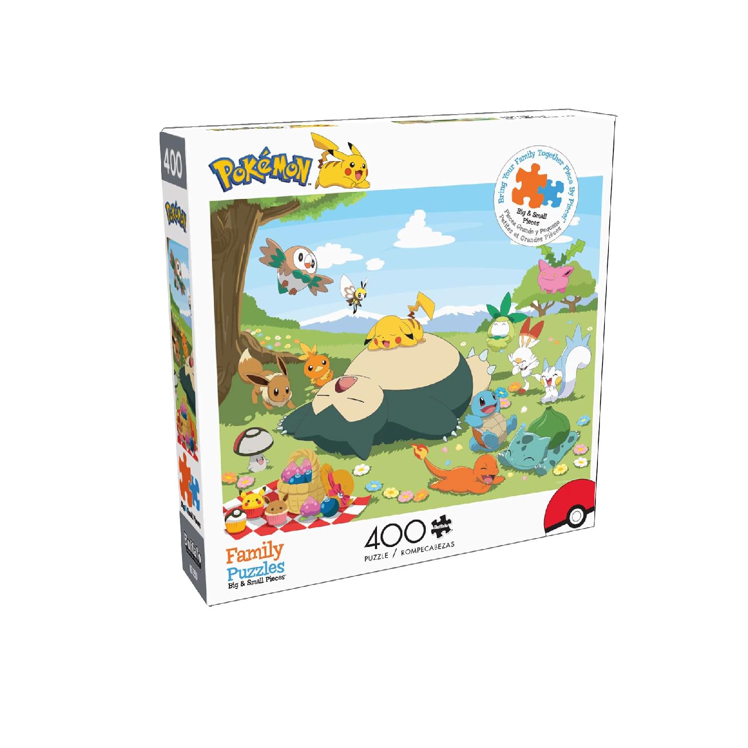 - Este rompecabezas Pokémon de 400 piezas cuenta con Snorlax y amigos Pokémon disfrutando de un picnic por la tarde y una siesta.