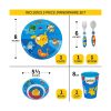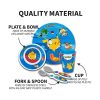 - Material de calidad: diseñado con calidad que los niños pueden disfrutar de forma segura, el plato y el cuenco están hechos de material de melamina duradero que es fuerte y duradero y lo suficientemente ligero para que los niños lo lleven. La taza está hecha de plástico de polipropileno que es ligero y duradero. El juego de cubiertos de tenedor y cuchara está hecho de acero inoxidable con un mango de plástico de fácil agarre fácil de sostener.