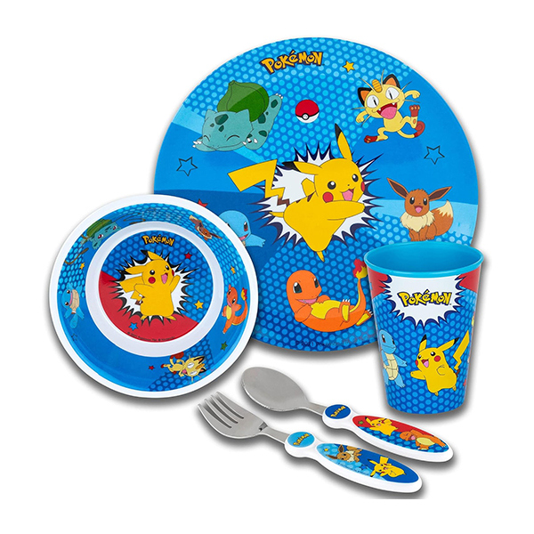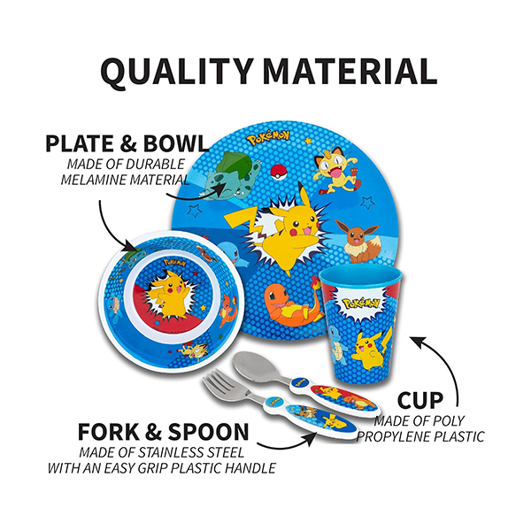 - Diseño de Pokémon: Pikachu, Charmander, Squirtle y Bulbasaur vienen a cenar o a la hora de la merienda. Los colores brillantes y las imágenes animadas ayudan a dar vida a la energía de Pokémon en este bonito y duradero juego de vajilla.