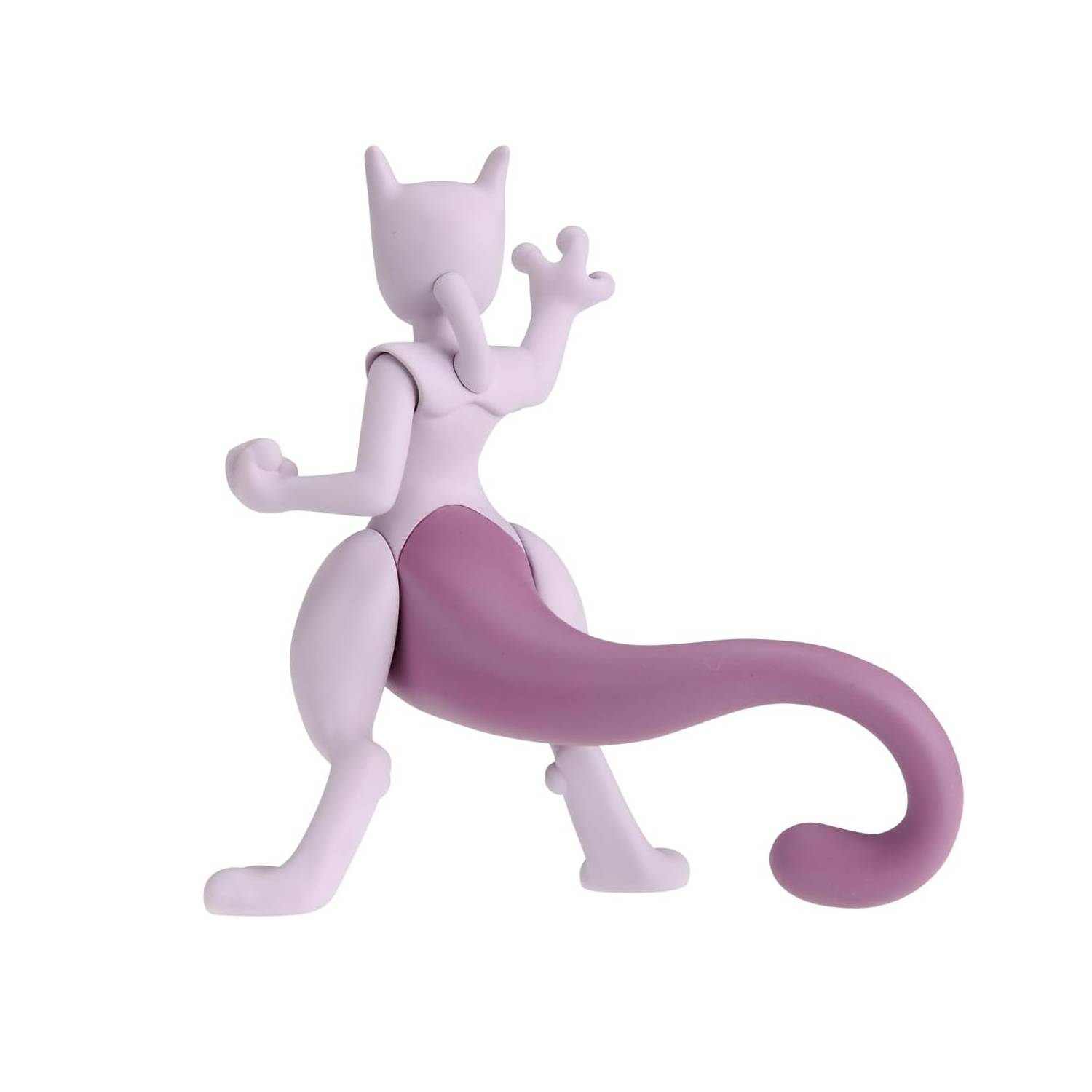 Mewtwo aparece en una pose dinámica, con acabados cuidadosamente pintados, resaltando sus músculos, cola, expresión facial y cuerpo aerodinámico. Esta figura captura su esencia poderosa y misteriosa, ideal tanto para coleccionistas como para niños fanáticos de pókemon.