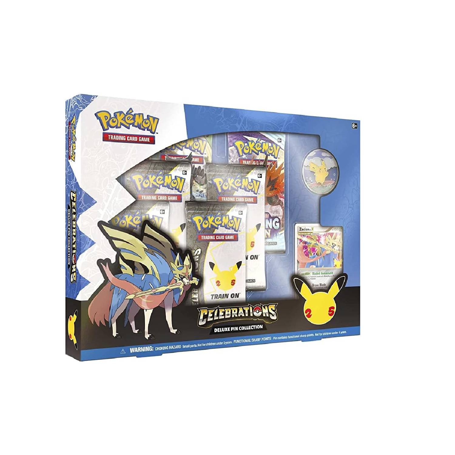 para una genial colección de juegos de cartas coleccionables de Pokemon que ayuda a conmemorar 25 años de buenos momentos y grandes aventuras. El querido Pokemon de tipo eléctrico está aquí como un elegante pin que presenta a Pikachu tomando las olas y los cielos. Zacian aparece en una tarjeta promocional especial de Zacian LV.X que se remonta a la Pokemon LV.X que se introdujo por primera vez en la expansión Diamond & Pearl en 2007.