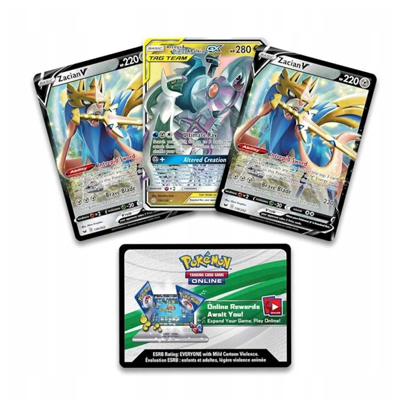 - 1 mazo listo para jugar de 60 cartas, incluyendo 2 Pokémon V y 1 TAG TEAM Pokémon-GX