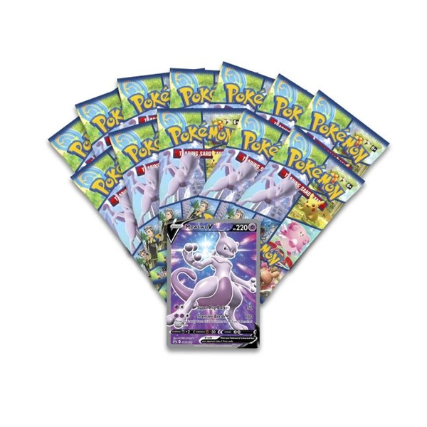 - 1 tarjeta promocional de aluminio de arte completo con Mewtwo V