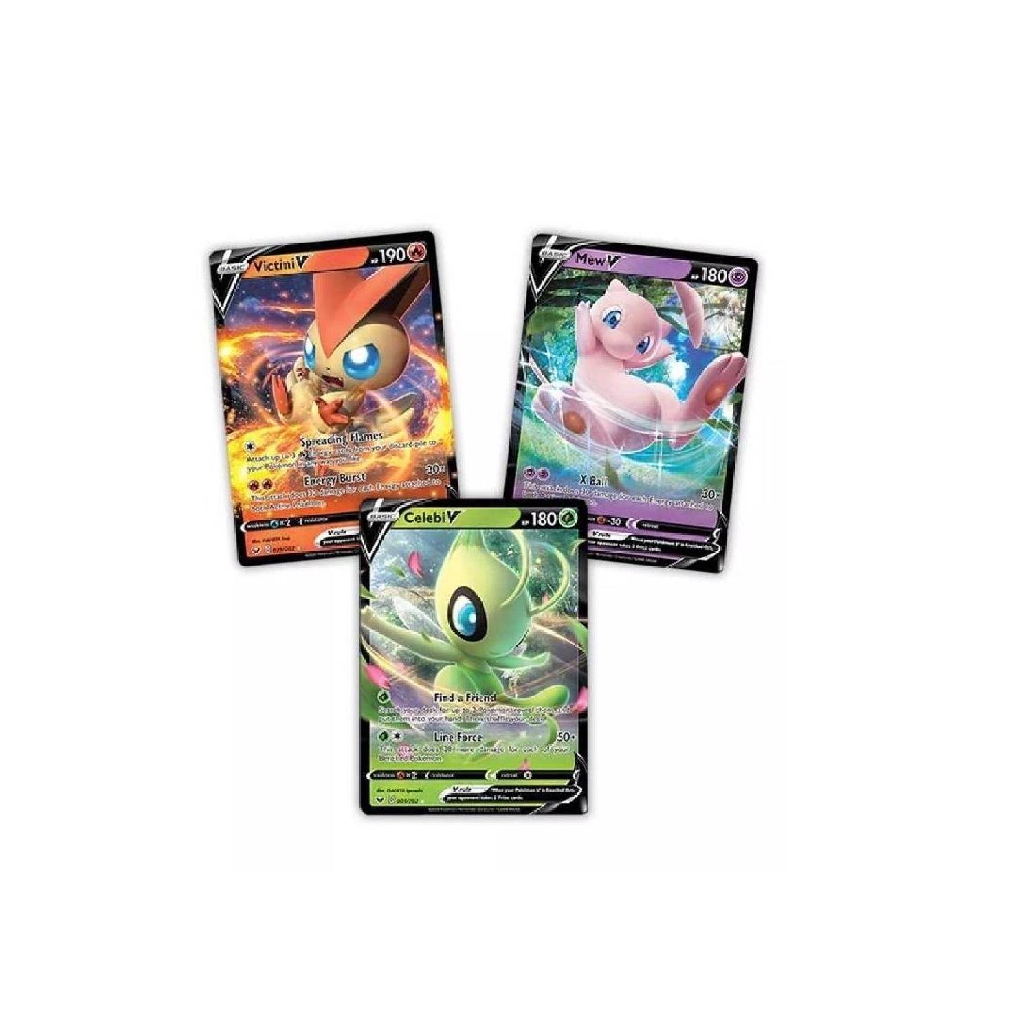- 3 tarjetas de Pokémon V con Mew V, Celebi V y Victini V