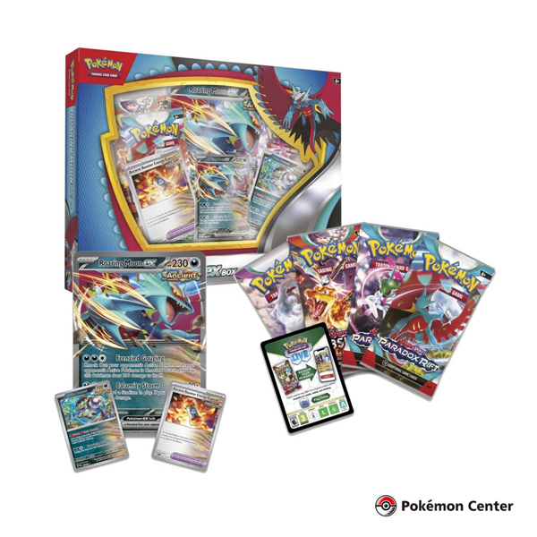 El feroz ex de Roaring Moon está despertando de un mundo desaparecido hace mucho tiempo! ¡Usa Frenzied Gouging para noquear a los Pokémon de tu oponente y luego causa estragos causando aún más daño con Calamity Storm! En esta caja, obtienes una tarjeta promocional con Roaring Moon ex, así como una tarjeta de gran tamaño para exhibir. Se le une Brute Bonnet y una Ancient Booster Energy Capsule, algo que tu yo pasado querría que tuvieras. ¡Encuentra aún más aliados útiles en los paquetes de mejora de JCC Pokémon incluidos!