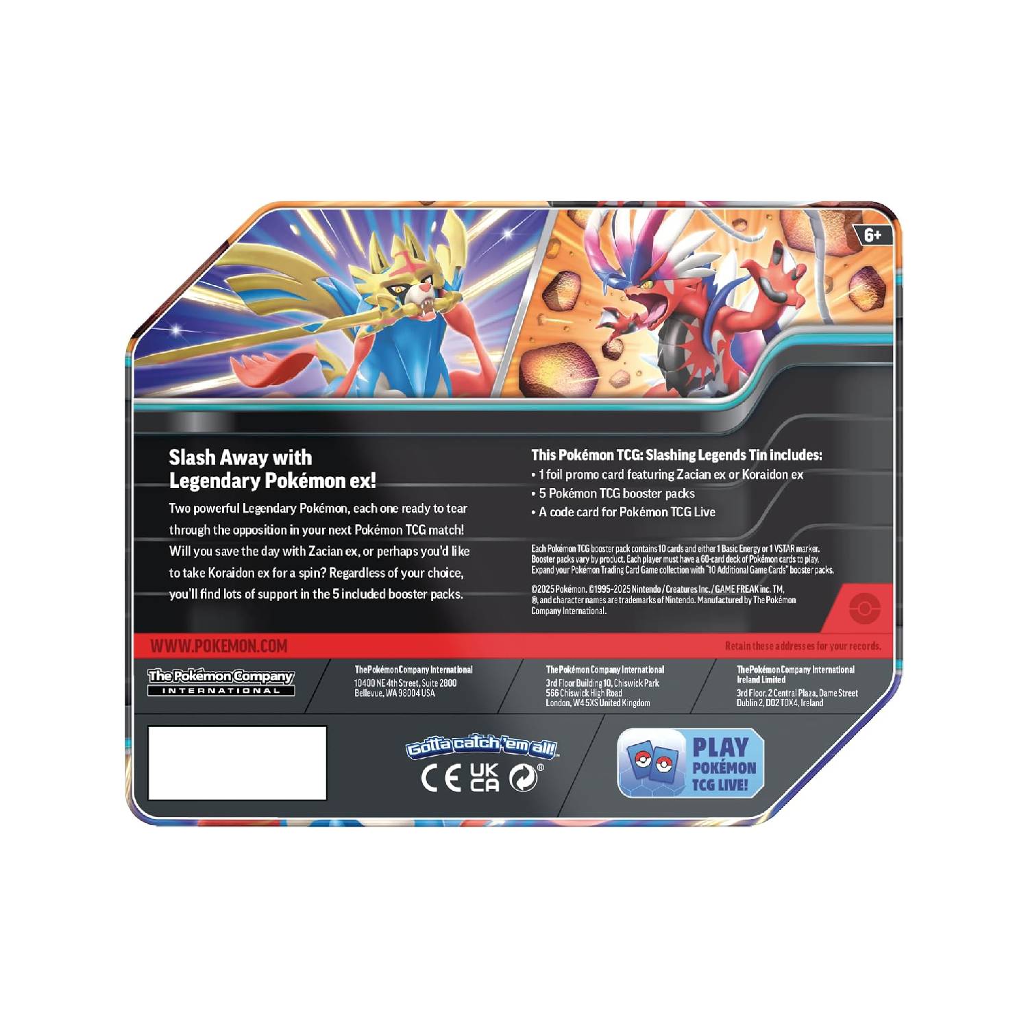La lata Leyendas Cortantes Pokémon TCG incluye: