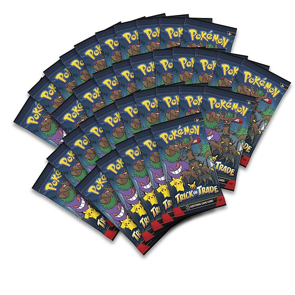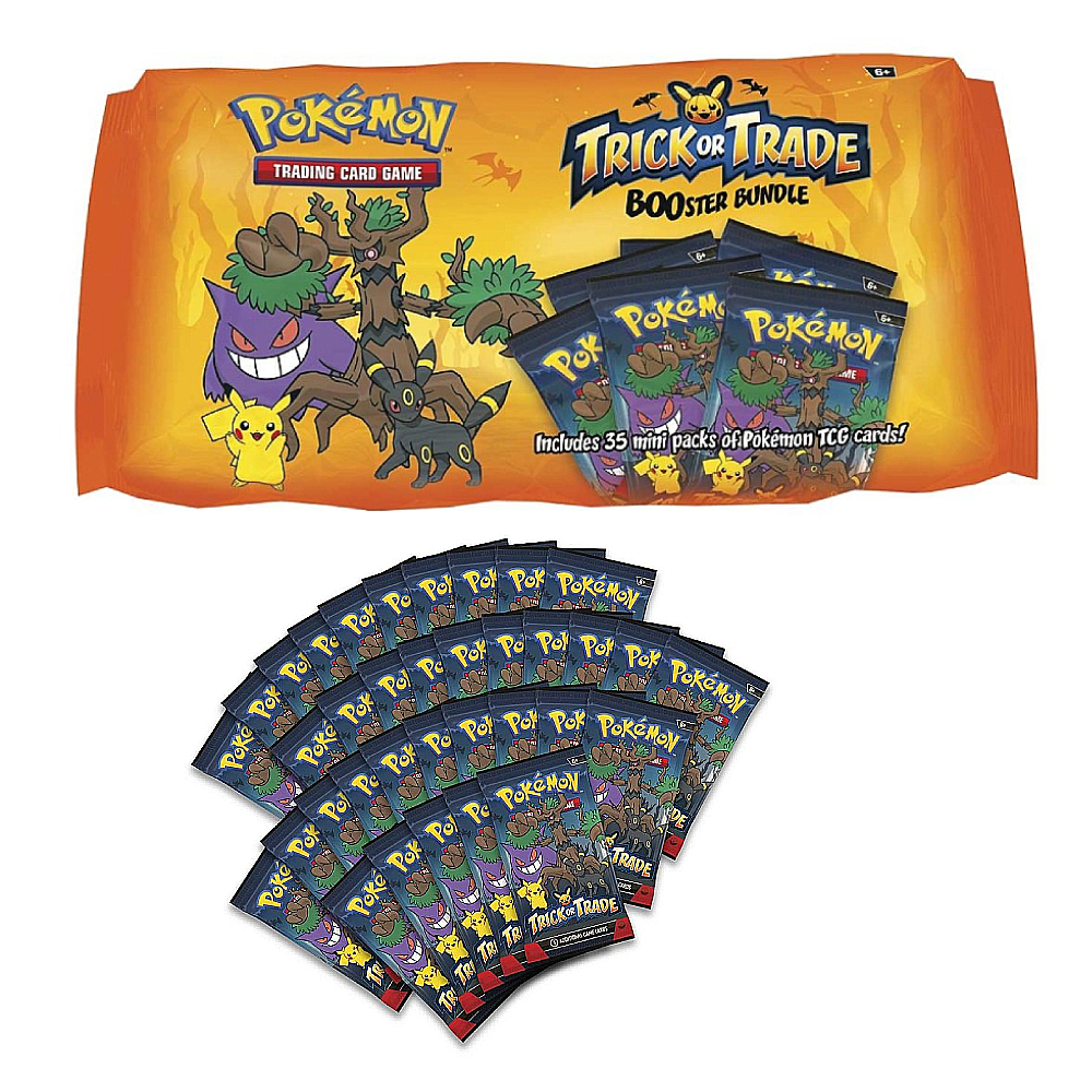 ¡Comparte la diversión y la emoción de Pokémon en la noche más espeluznante del año con un paquete de sobres de refuerzo! En el interior encontrarás 35 minisobres, cada uno con tres cartas coloridas del juego de cartas coleccionables Pokémon.