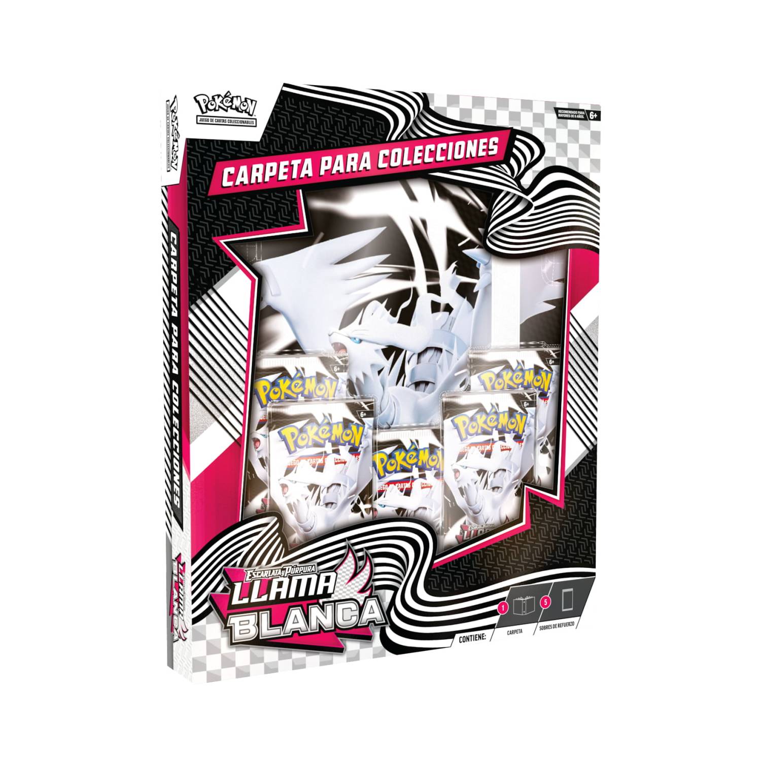 Organiza tu colección como un verdadero Maestro Pokémon con la Carpeta para Colecciones de Escarlata y Púrpura – Llama Blanca del JCC Pokémon! Esta carpeta temática te permite llevar el control de tus cartas favoritas, justo como si fuera tu Pokédex personal.