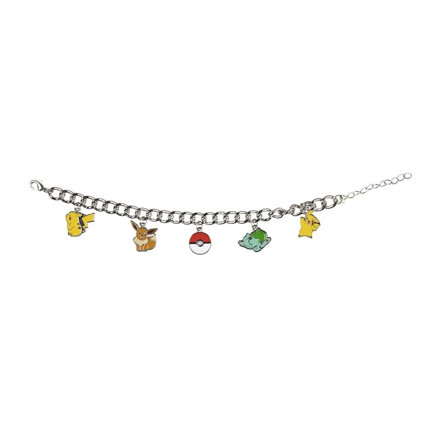 Esta pulsera es un accesorio de moda licenciado que combina el estilo clásico de una pulsera de dijes con el encanto de Pokémon. Es un producto de Bioworld, una marca reconocida por crear mercancía de alta calidad basada en licencias de entretenimiento.