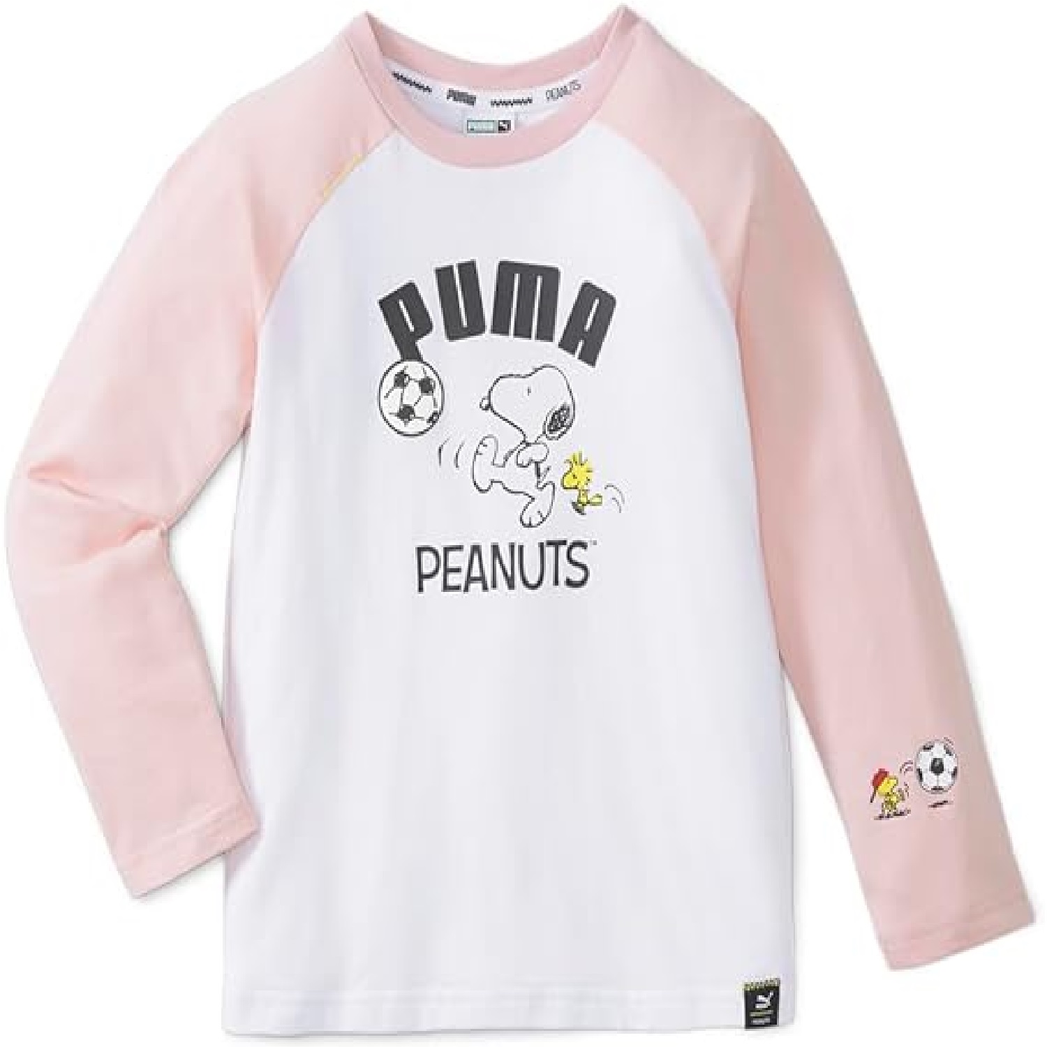 Una icónica silueta de béisbol, con bloques de colores fríos, bordado llamativo y gráficos de Snoopy con temática deportiva, Woodstock y Charlie Brown, esta dulce camiseta de manga larga está lista para divertirse.