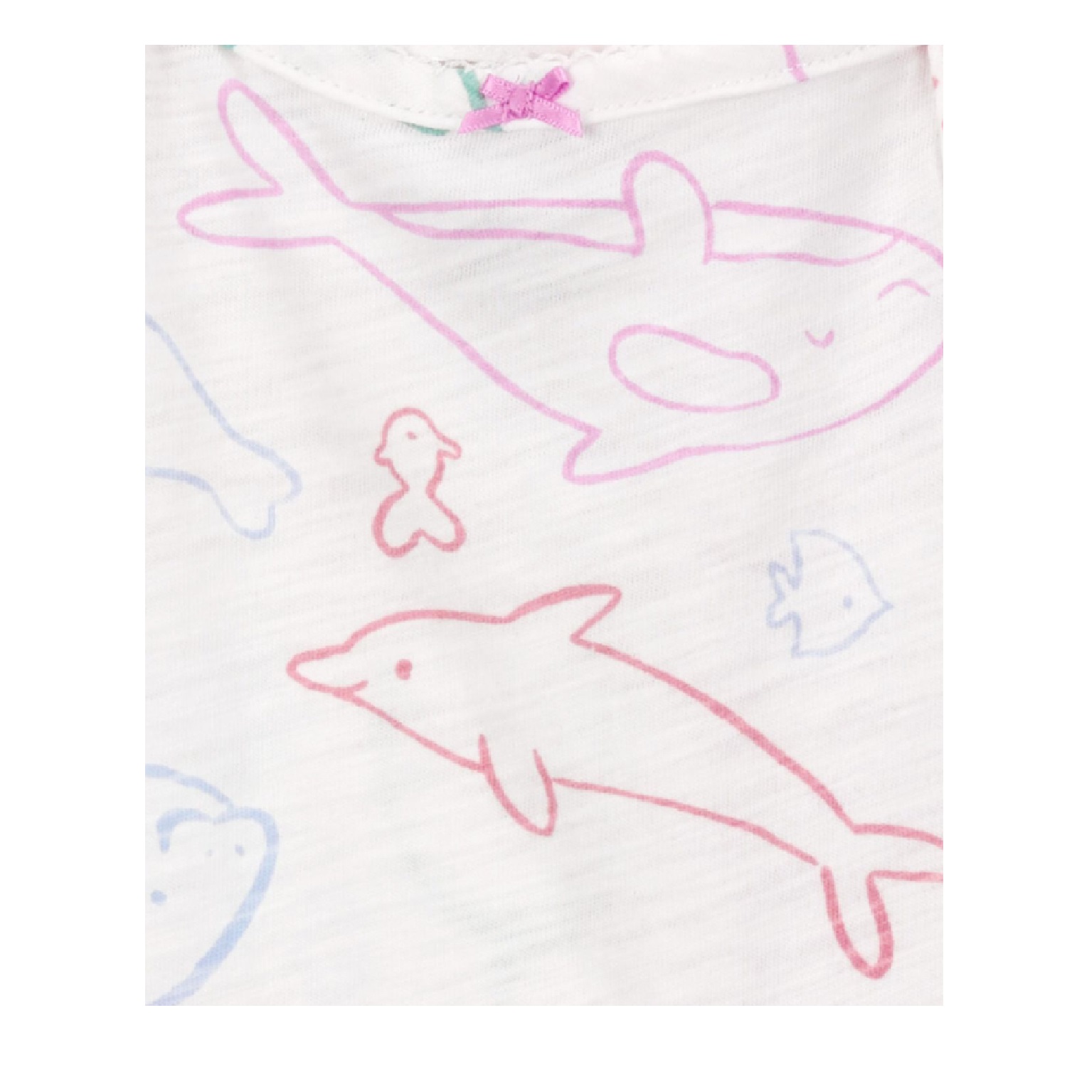 Body de Manga Corta: Con rayas rosa y blancas, y un gráfico de una ballena en el pecho, este body es perfecto para los días calurosos. Su diseño incluye broches en la parte inferior para facilitar el cambio de pañal.